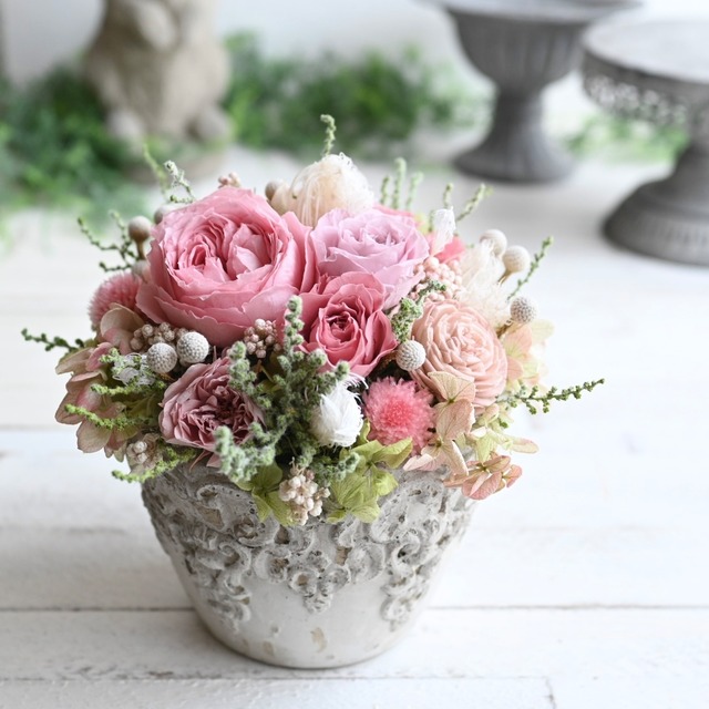 ローズフラワーガーデンS*くすみ系ピンク*プリザーブドフラワー
