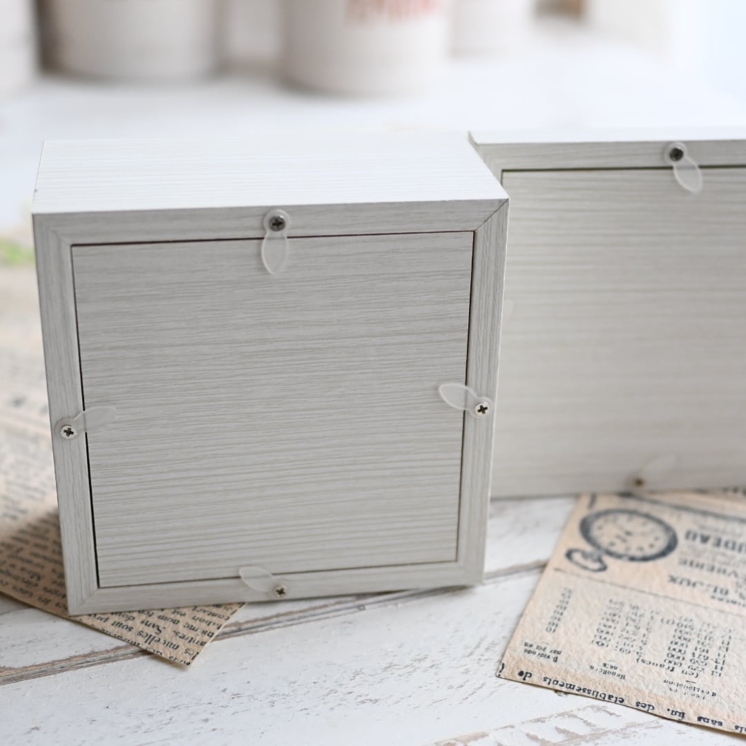 優しいピンクのアレンジメントを詰め込んだ、木目ホワイトのフォトフレームです。