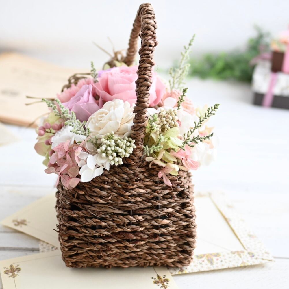 和らぎの華バスケット*あふれる花籠アレンジメント プリザーブドフラワー