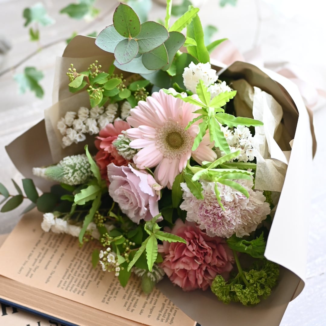 母の日限定*生花の花束 ピンク&グリーンのやさしいブーケ