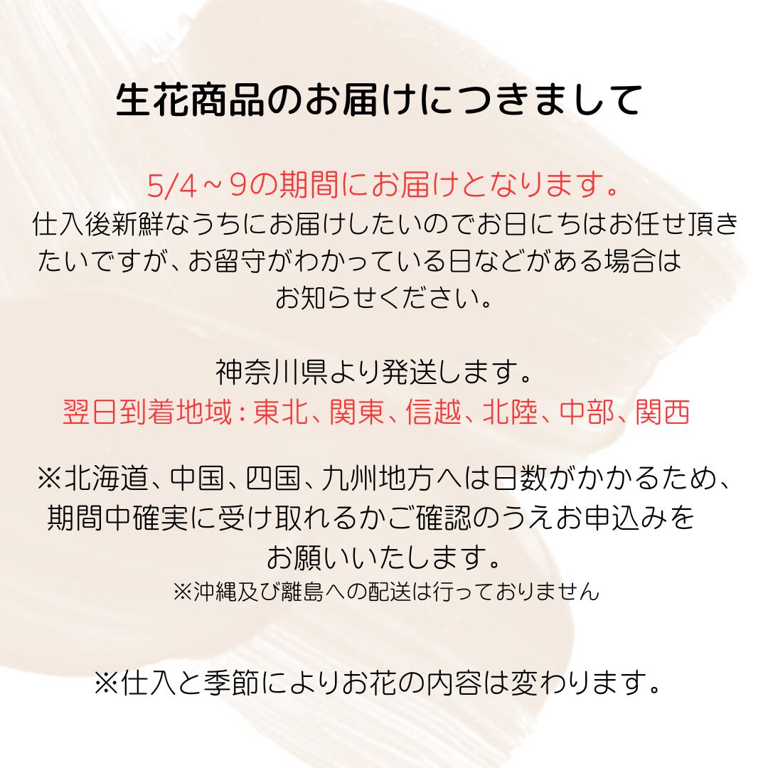 5/9-10ご希望される場合は仕入価格が高騰のためお花の内容完全おまかせで大丈夫でしたらお受けできますのでお知らせ下さいませ。