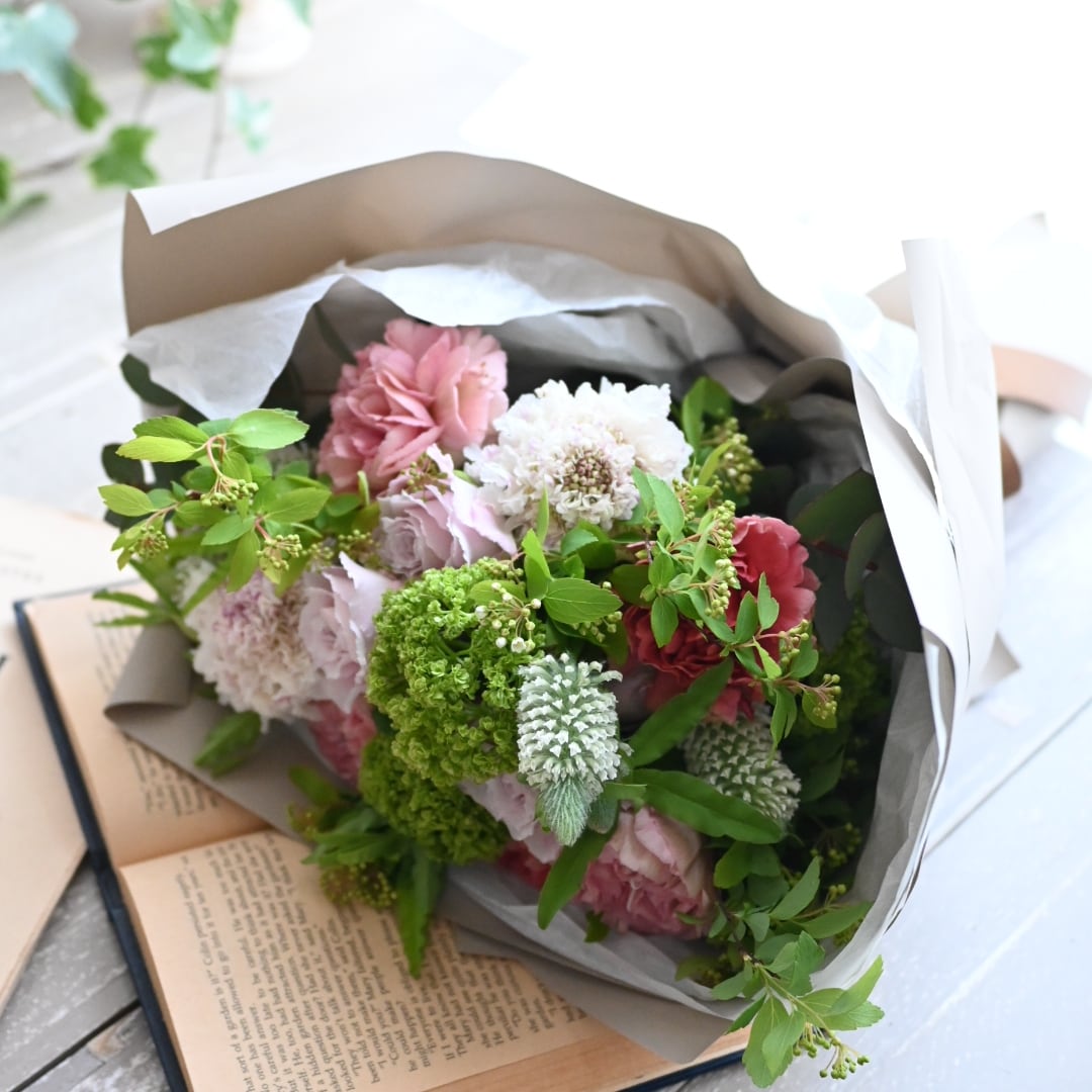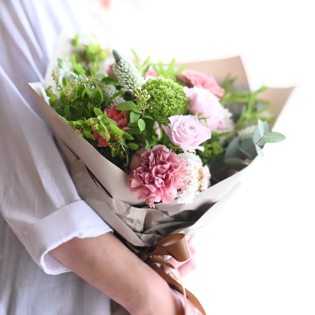 母の日限定*生花の花束 ピンク&グリーンのやさしいブーケ