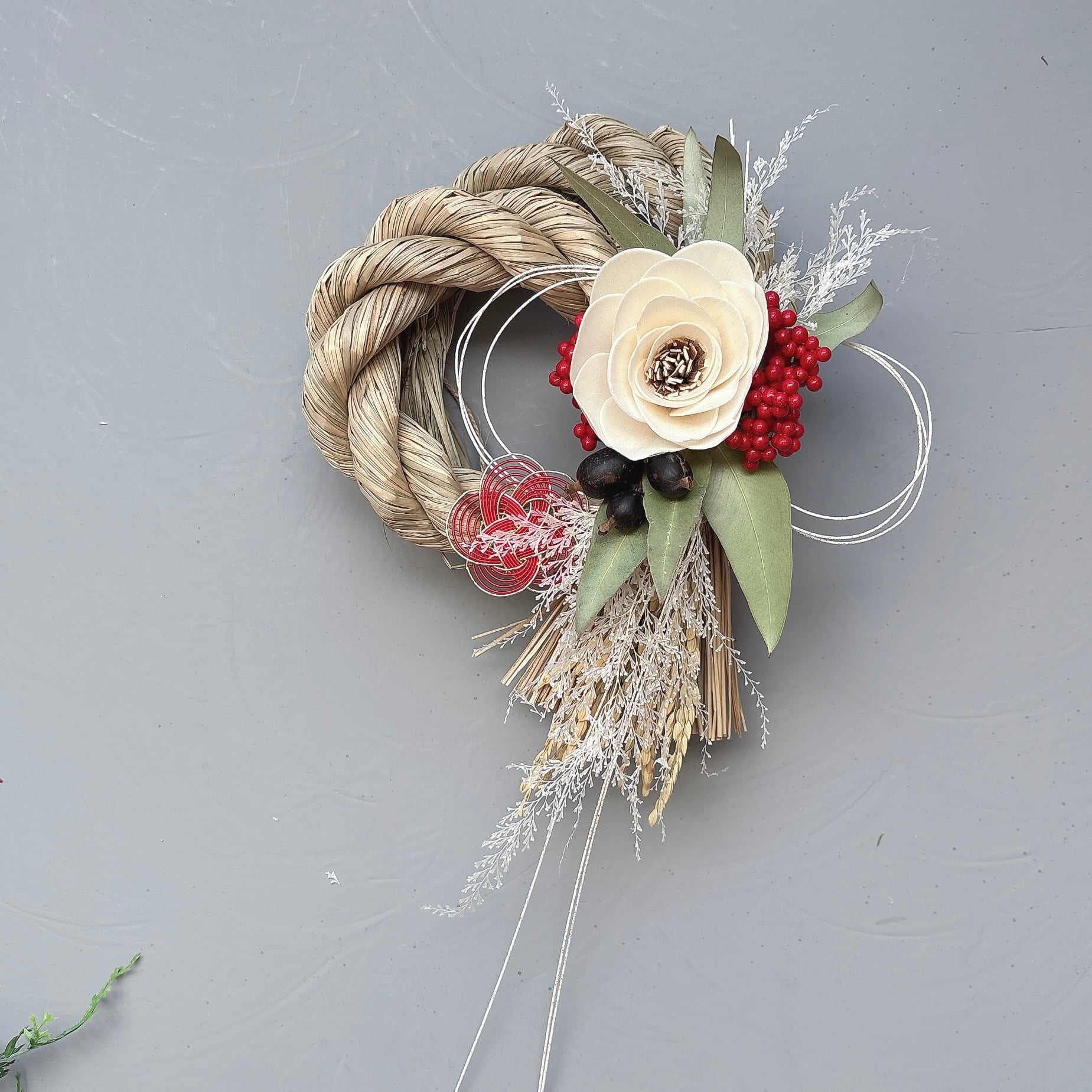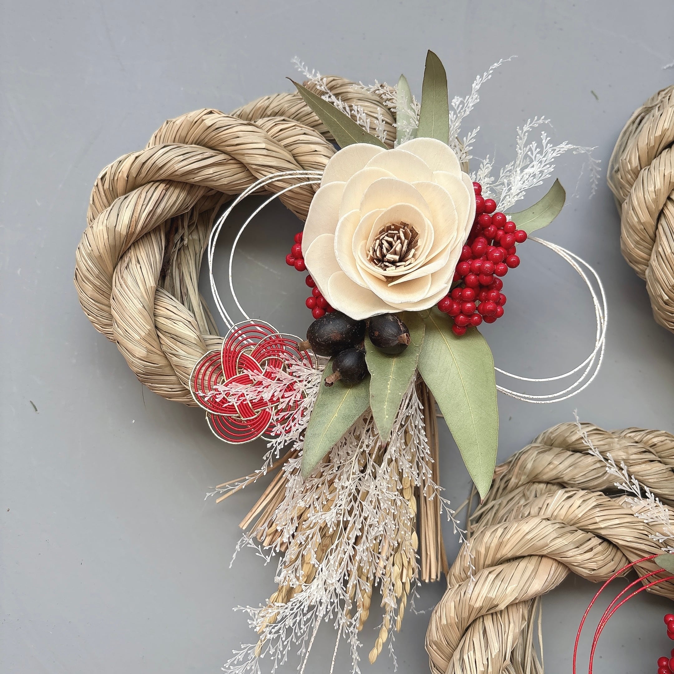 しっかりと太さのダブルリングしめ縄を使った存在感のあるお正月飾り、こちらはほどよいコンパクトサイズです。