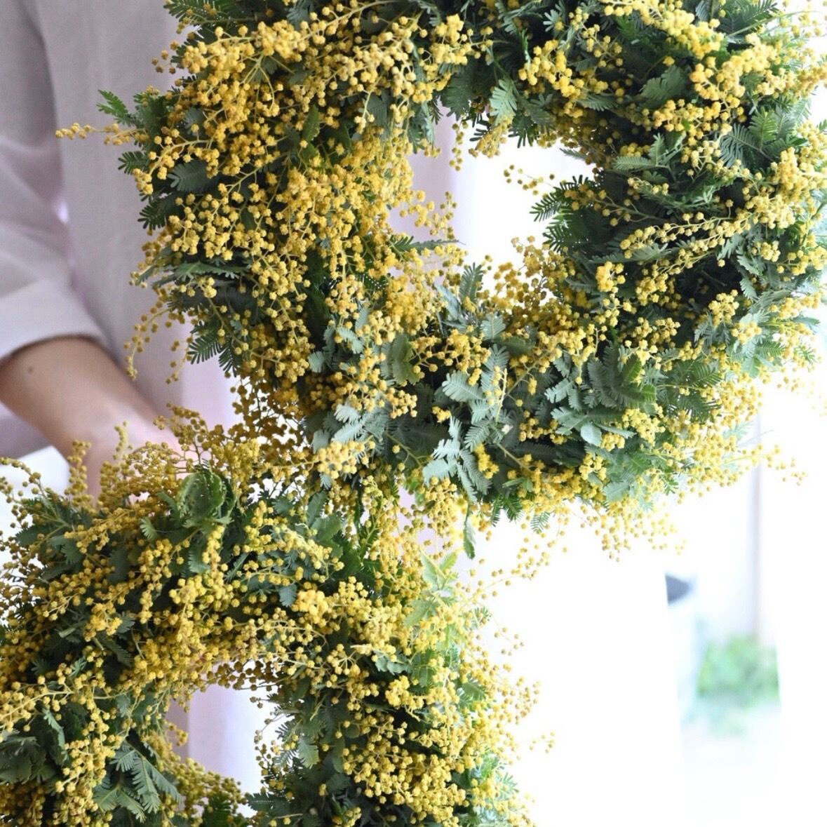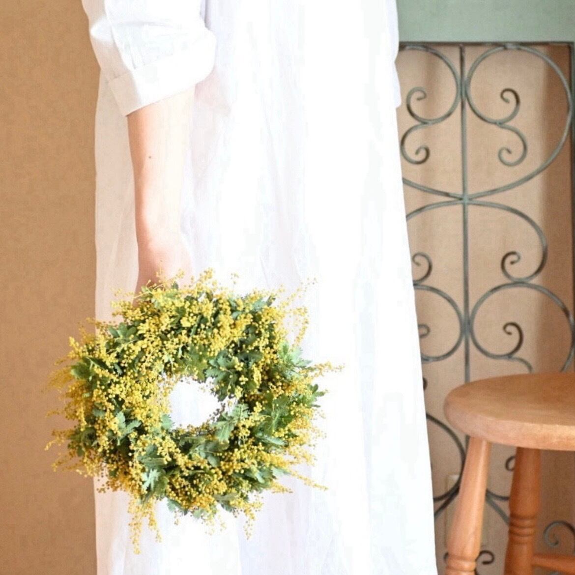 ミモザを市場から入荷しリースを制作しましたらその日のうちに発送します。