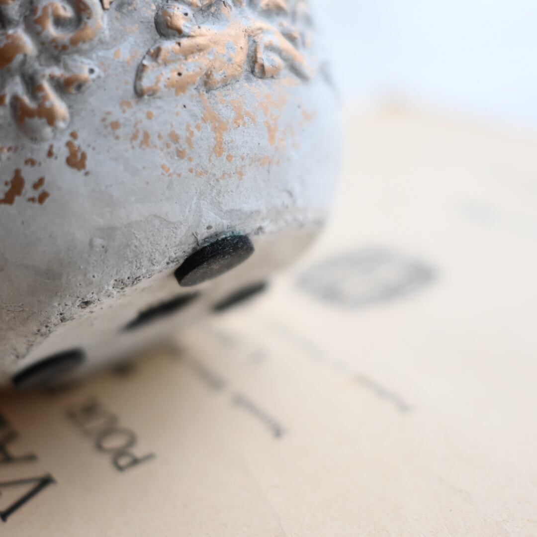 鉢は重みと高級感のあるセメント鉢で、底には家具を傷つけないゴムパットがついていて安心です。